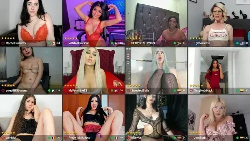 - You'll find a decent (but not overwhelming) number of transsexual webcam models available for live shows during most hours.