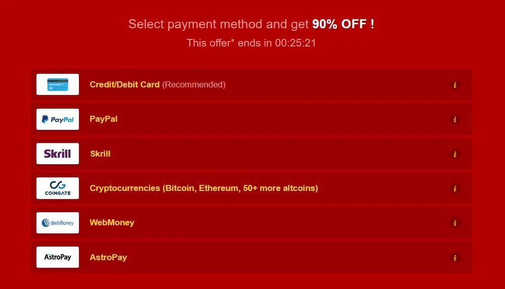 - Εναλλακτικές επιλογές πληρωμής ανά γεωγραφική περιοχή: Skrill, Sofort Banking, Ευρωπαϊκή Άμεση Χρέωση, Paysafecard, Πληρωμή μέσω Τηλεφώνου, Neosurf, WebMoney