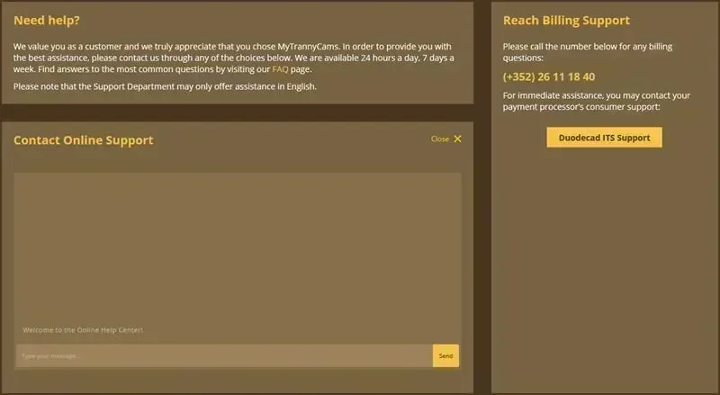 Ik heb niets negatiefs te zeggen over de klantenservice van MyTrannyCams, want die is de beste van alle trans chat-sites.