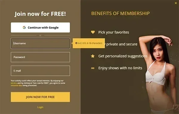 Meedoen bij MyTrannyCams is simpel, snel en vooral helemaal gratis. Je hebt alleen een geldig e-mailadres, een gebruikersnaam en een wachtwoord nodig; er is geen betaalinformatie vereist. Je kunt je ook snel en veilig aanmelden via je Gmail-account, wat het nog makkelijker maakt. Zodra je bent geregistreerd, krijg je tien extra gratis peeks en kun je modellen aan je favorietenlijst toevoegen, zodat je makkelijker een nieuwe trans-speelmaatje vindt.
